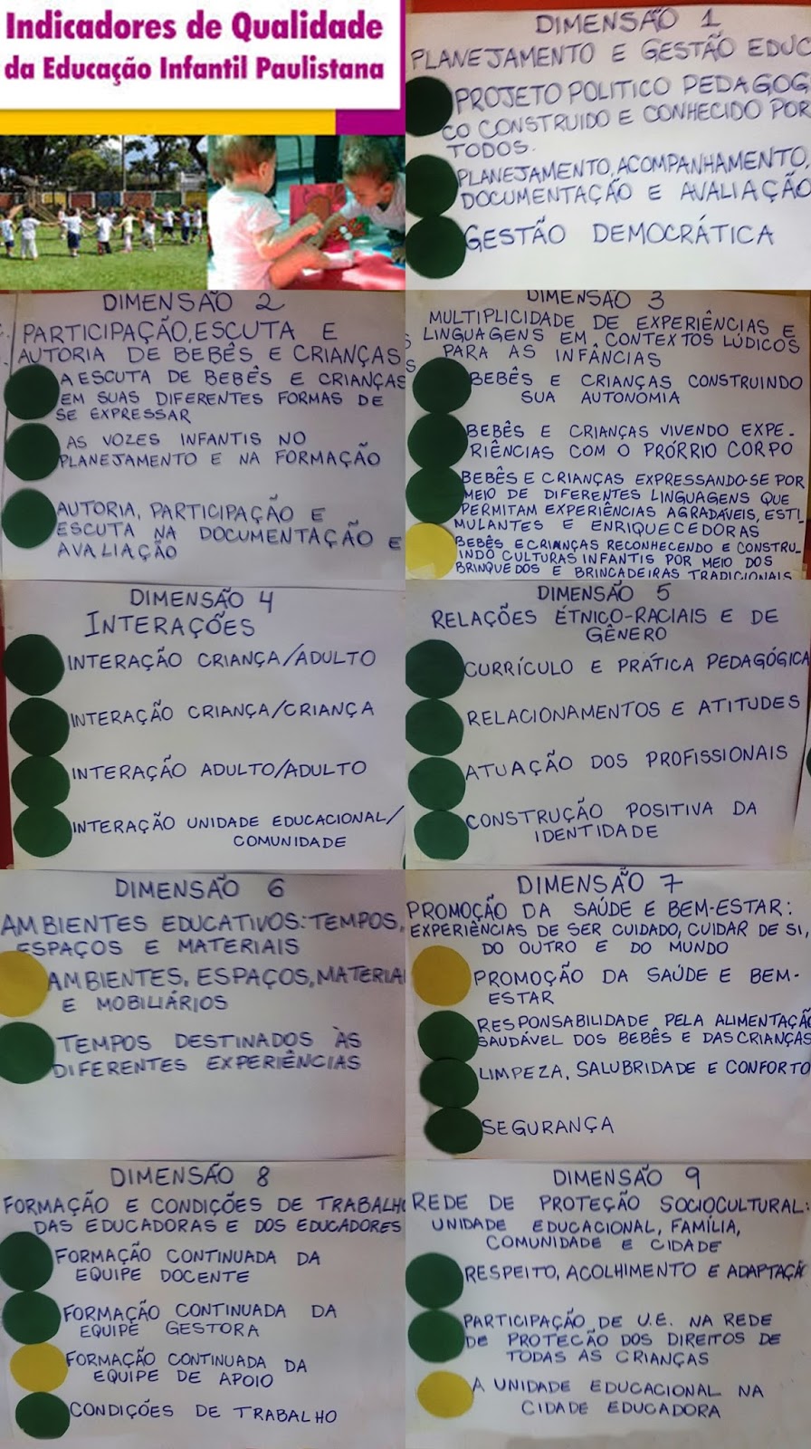 Quadros-Síntese dos Indicadores da Qualidade na Educação Infantil Paulistana de nossa escola: